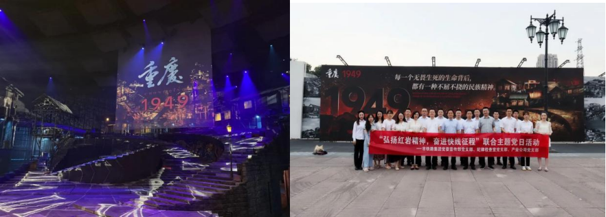 活动简介:为深入贯彻党的十九届六中全会和市第六次党代会精神,落实《重庆市红色资源保护传承规定》,推进党史学习教育常态化长效化,发扬光荣革命传统,激发党员同志的爱国主义情怀,6月17日,纪律检查室党支部联合党委宣传部党支部、产业公司党支部开展“弘扬红岩精神,奋进快线征程”主题党日活动,观看了历史舞台剧《重庆·1949》。活动成效:此次主题党日活动以“党建+党史学习教育”相融合的方式,通过观看红色舞台剧《重庆·1949》,给全体党员上了一场生动鲜活的革命教育课,让大家接受了一次红色思想的洗礼,引导党员们在“参与、体验、思考”中熟悉党的历史,坚定理想信念,激发爱国热忱和历史责任感,并进一步凝聚党员团结干劲,在新时代开启新征程、实现新作为,用革命精神激励全体党员干部胸怀大局、严守纪律、恪尽职守。