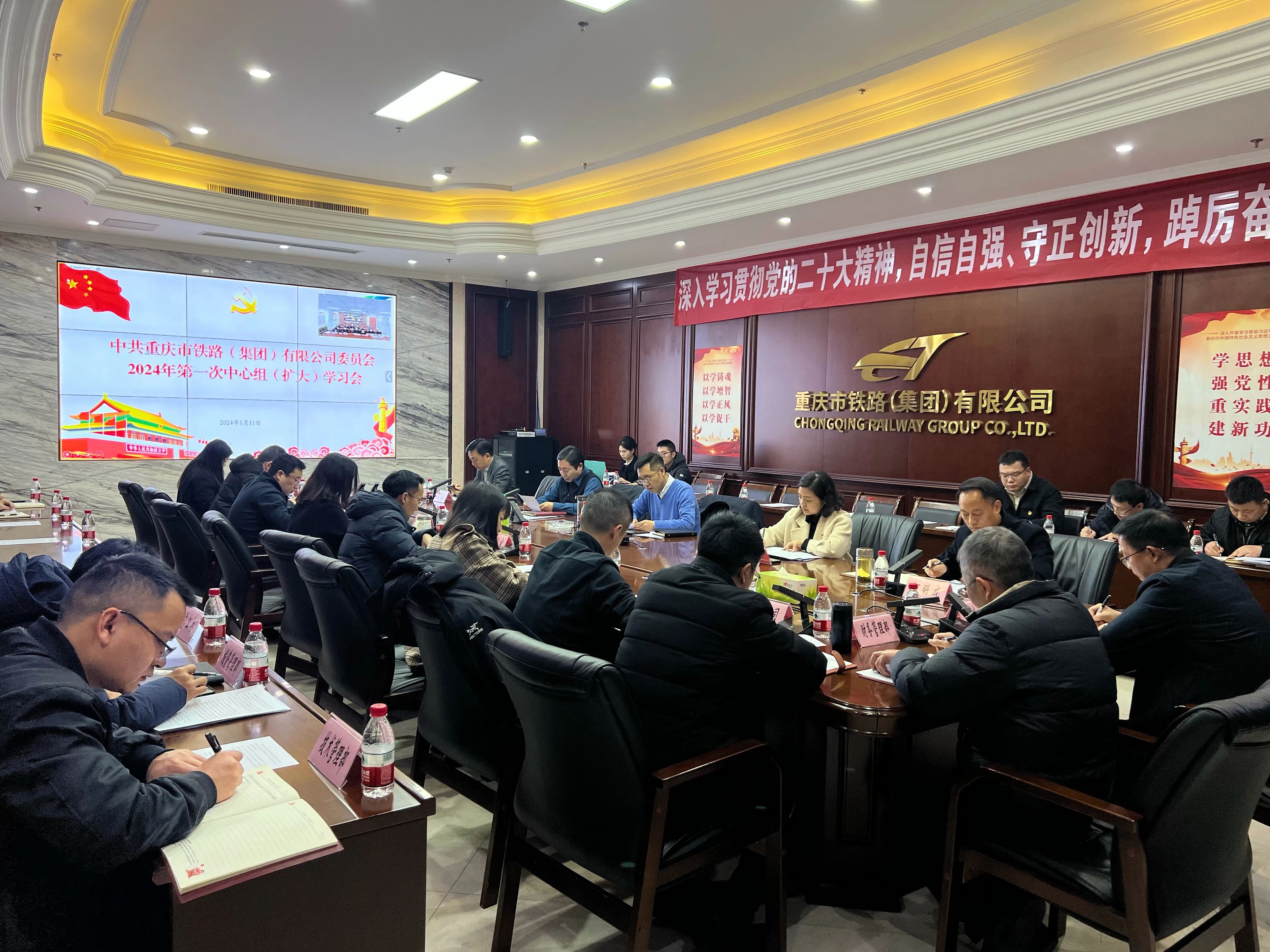 1月11日,市铁路集团党委组织召开2024年第一次中心组(扩大)学习会,深入学习贯彻习近平总书记在二十届中央纪委三次全会、中共中央政治局主题教育专题民主生活会上的重要讲话精神等内容,全面贯彻市委六届四次全会、市委经济工作会议和全市“三攻坚一盘活”改革突破动员部署会精神要求,研究部署集团落实举措,以“开局即是决战,起步就要冲刺”的干劲和拼劲,全力以赴推动集团各项工作落地见效。会议由集团党委副书记、总经理马虎主持。