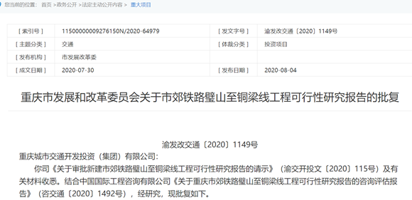 重庆市郊铁路璧铜线获批!总投资86.42亿 设立这9个站点
